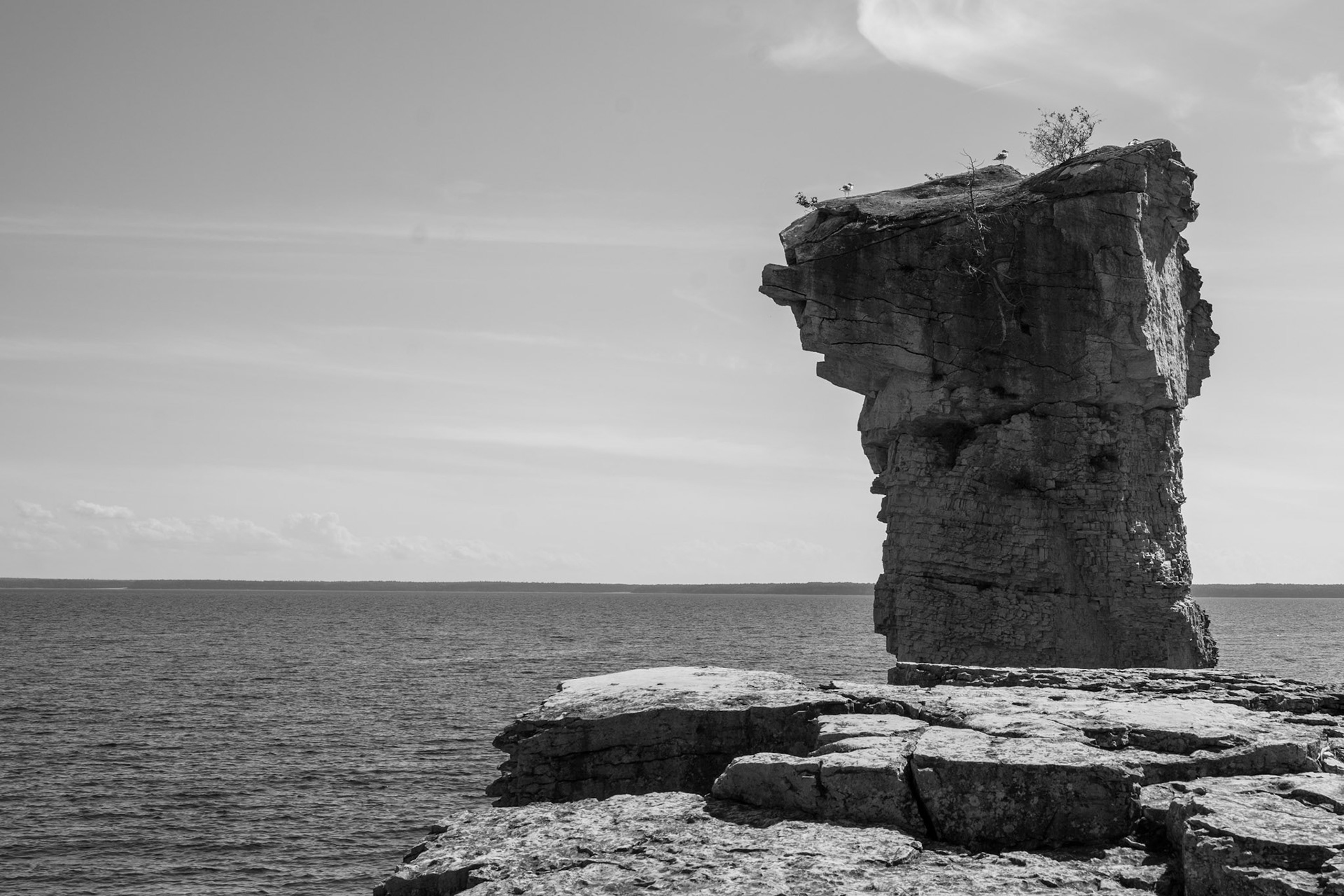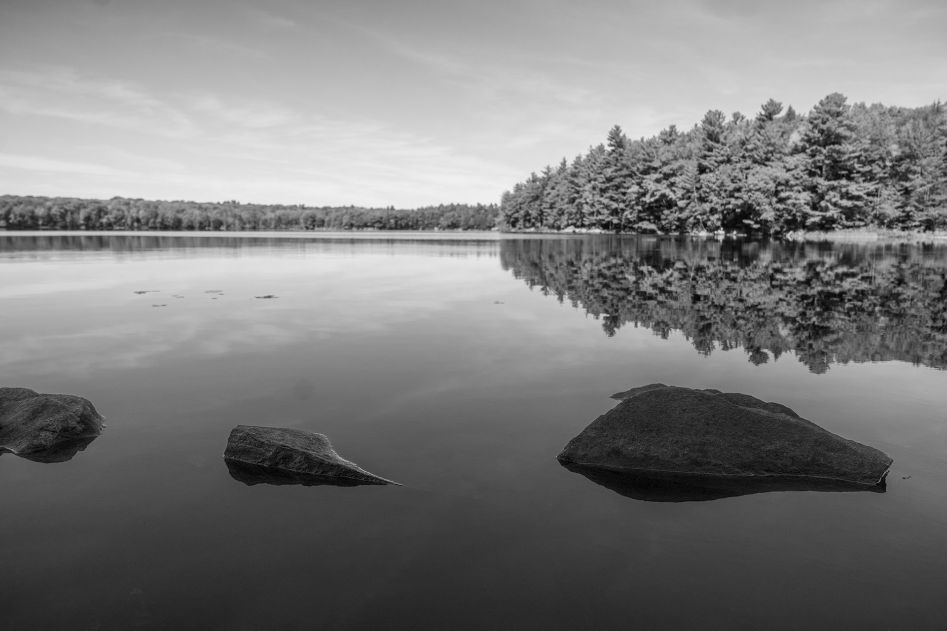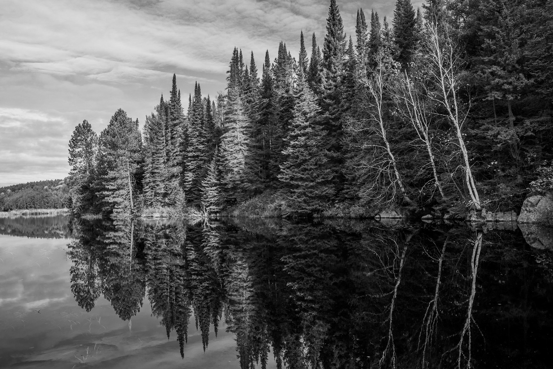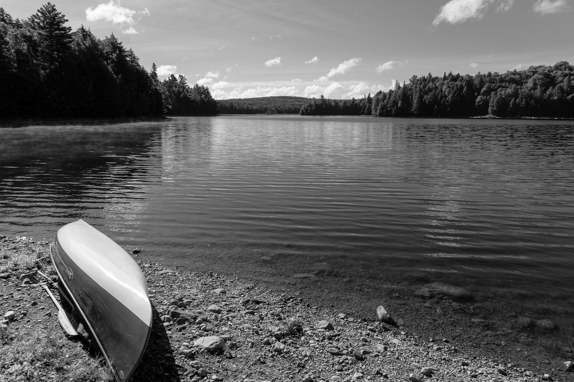 At the Edge of the Wild is an ongoing photographic exploration of Ontario’s untamed spaces. places where the calm of water meets the strength of rock, and where the human presence fades into the quiet rhythm of the land. Shot in black and white, the series captures moments of stillness and transition: mist lifting from a lake, clouds sweeping over distant hills, the watchful pause of an animal in its element.